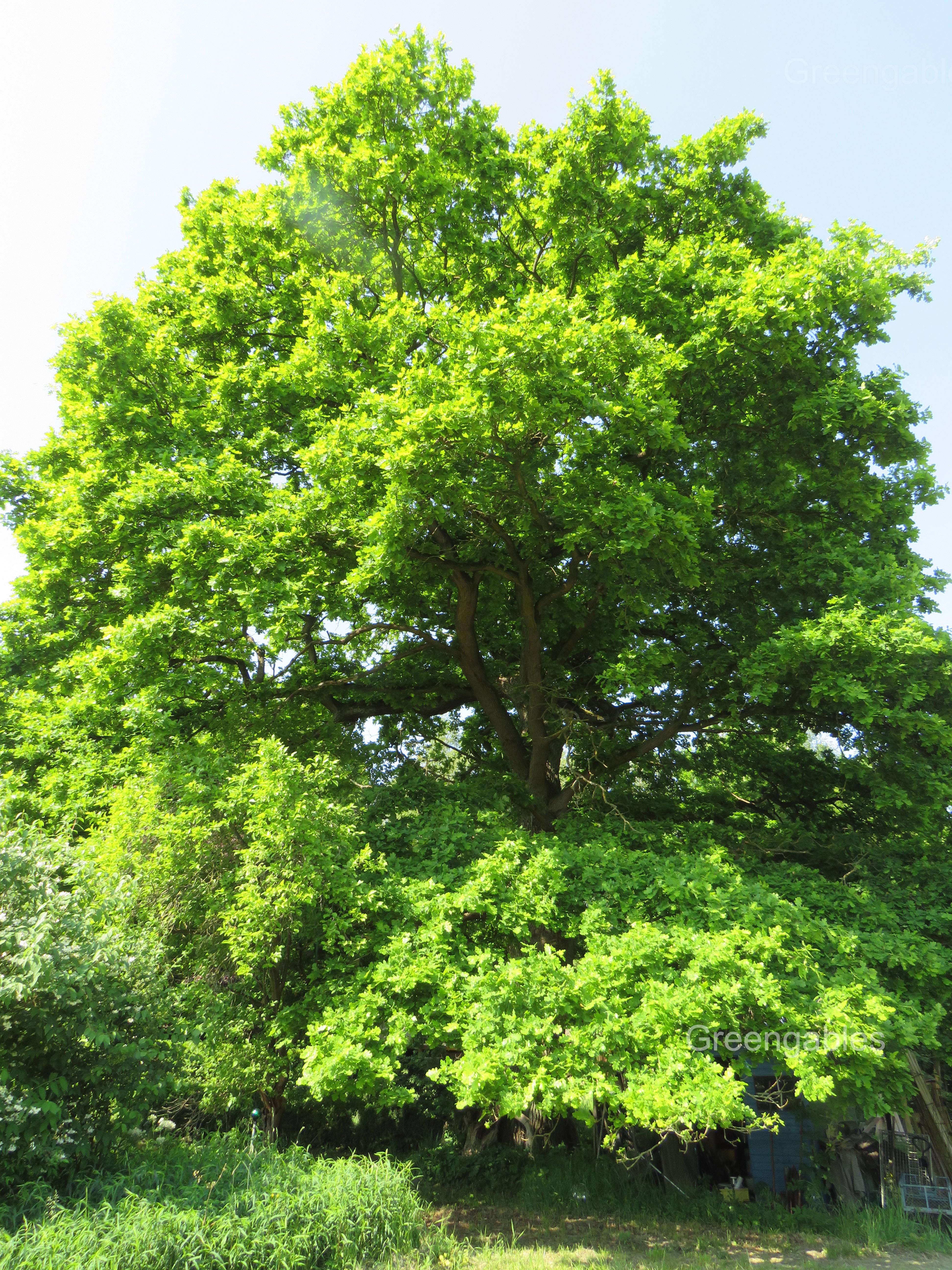 "Unsere" alte Eiche gehört zu den wenigen alten Bäumen, die wir vor 35 Jahren hier auf dem Gelände vorgefunden haben. Ich schätze ihr Alter auf ca 300 Jahre.